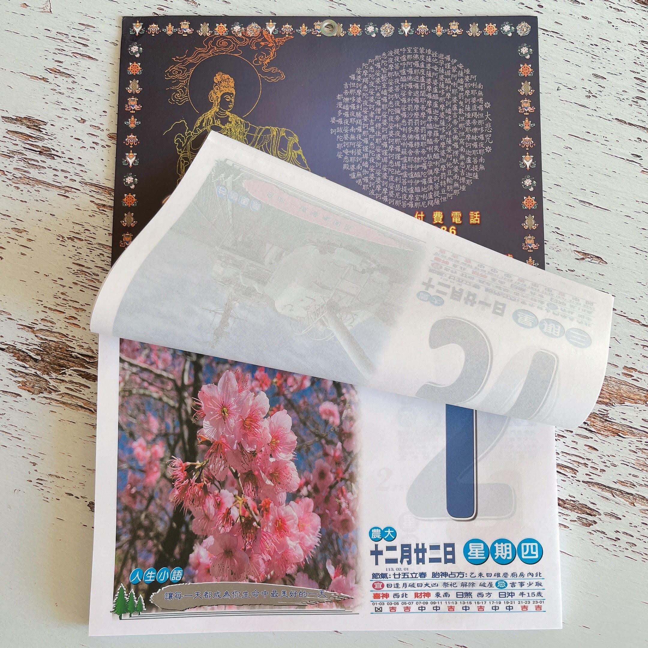 当カレンダーは、新暦、農暦(旧暦)の記載があり、さらに、各季節ごとの節気、毎日の吉凶方位、吉凶時間、吉凶用事など、このカレンダーが一家にあれば通書要らずともなる、大変便利なカレンダーでございます。